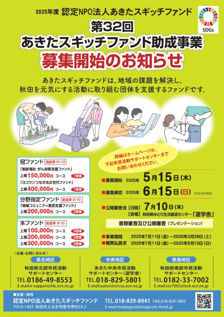 あきたスギッチファンドは地域の課題を解決し、秋田を元気にする活動に取り組む団体を支援する